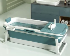 HelloBath Opvouwbaar Zitbad – Bath Bucket – 148cm – 220L – Extra Lang – Incl. Badkussen & Opberghoes