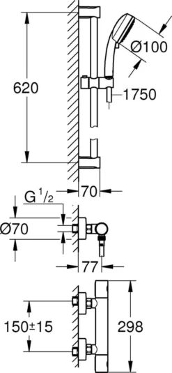 GROHE Precision Flow Thermostatische Douchekraan Met Douchegarnituur – EcoJoy® – 15cm – 34841000