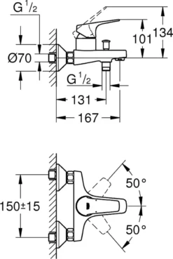 GROHE Grohtherm 2000 New Thermostatische Badkraan – 15cm – CoolTouch – Met Tray – Chroom – 34464001
