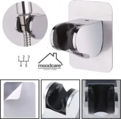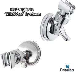 Merkloos Douchekophouder – Grote Zuignap – Klik&Vast – Draaibaar – Chroom
