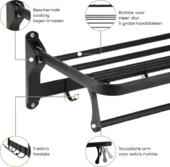 De 5 extra haken geven je de mogelijkheid om kleine accesoires of washandjes te drogen.