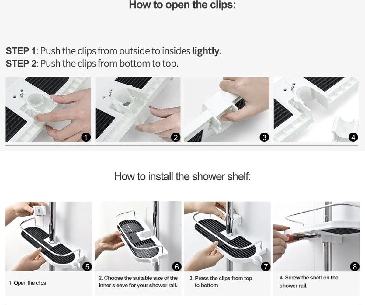 Geen Boren – Installeer dit planchet op uw douchestang, u hoeft geen gaten in de muur te boren