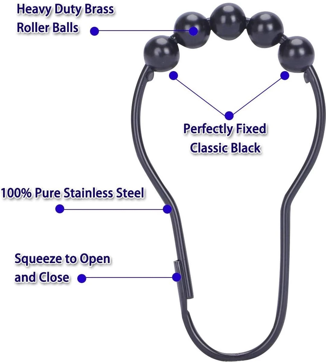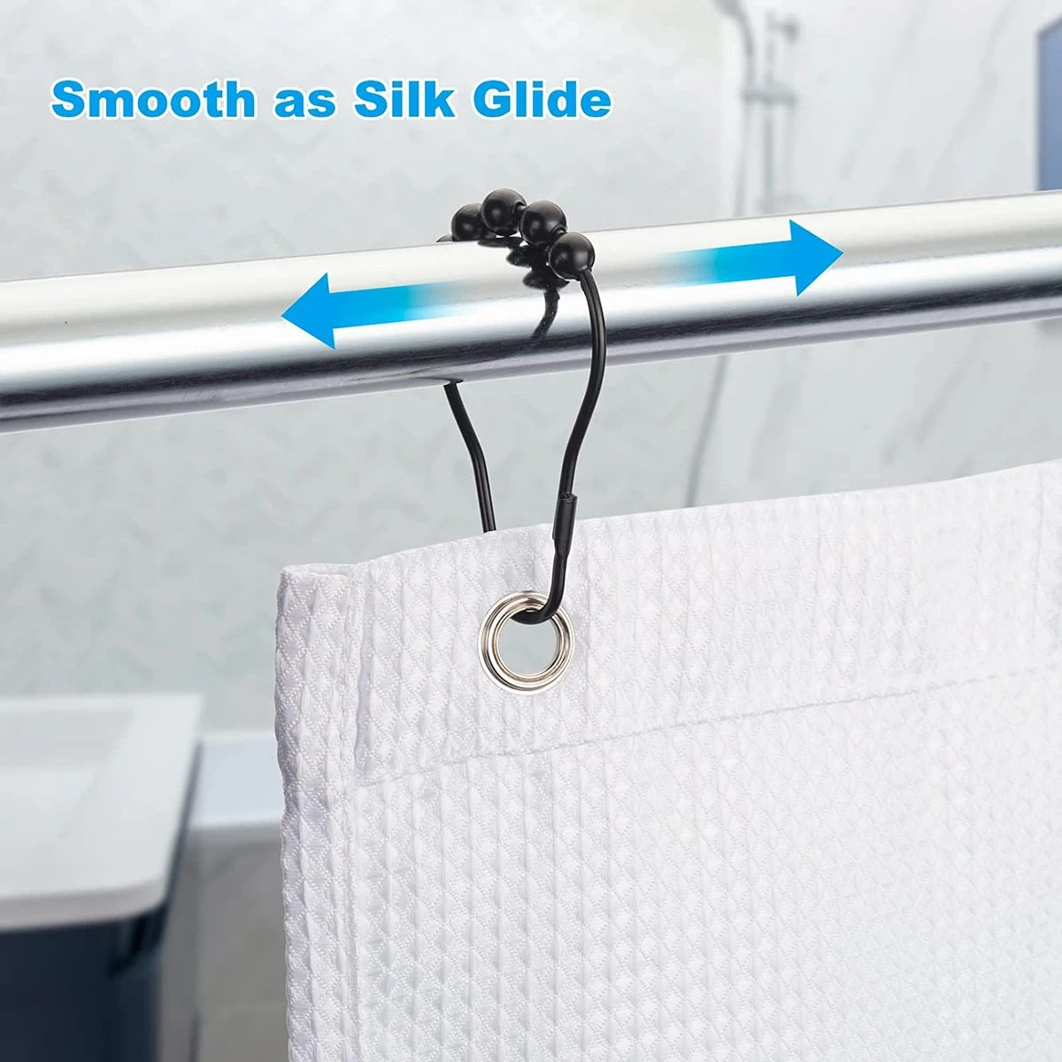 Gratis verguldsel- Geen haperen, geen moeite, geen gedoe. Deze douchegordijnhaken zijn voorzien van speciaal ontworpen bolvormige kogels om de wrijving te verminderen en moeiteloos over de stang te glijden met vrijwel geen enkele inspanning.