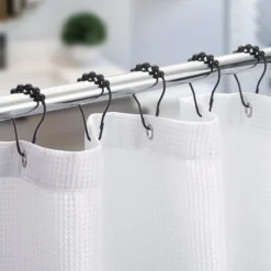 Douchegordijnringen met zware sluiting – De douchegordijnringen zijn sterk genoeg om een zwaar gordijn te dragen. Ze zijn afgedicht, waardoor het gordijn onmogelijk van de ringen kan glijden.