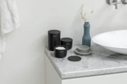 Het zijn vaak de kleine dingen die ons vrolijk maken, zoals deze drie stapelbare Brabantia ReNew Opbergpotjes – set van 3 – Dark Grey. Twee stuks voor haarspeldjes, oorbellen en al die andere kleine dingen die je graag bij elkaar houdt. De grotere pot is perfect voor wattenbolletjes of -schijfjes. Stapel op potjes.