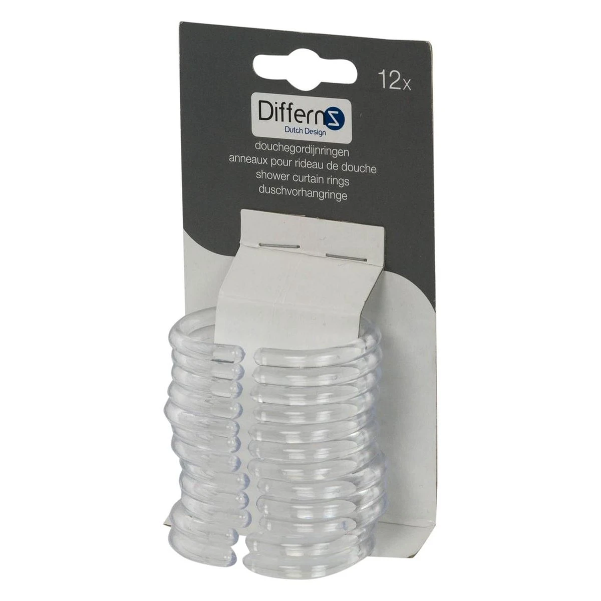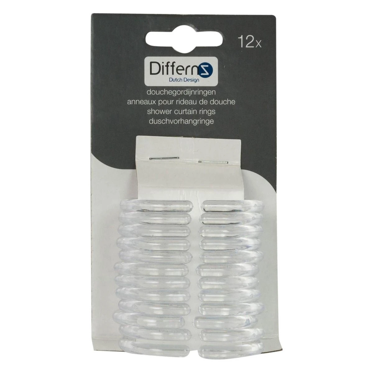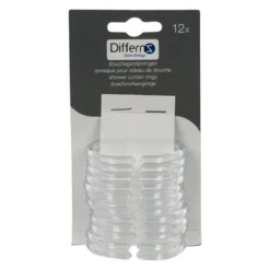 Met de Differnz ringen bevestig je elk type douchegordijn eenvoudig aan een stang. De ringen zijn van kunststof. Daardoor glijden ze gemakkelijk over de stang en zijn niet gevoelig voor vochtig. De afmeting van een ring is 6 bij 4 cm. Deze ringen passen dus op vrijwel elke stang. Door middel van een kleine opening zijn de ringen door het gordijn en de stang te halen. Deze set bestaat uit 12 ringen.