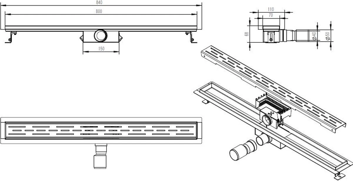 | Verpakkingsinhoud | Douchegoot RVS FLENS 80 CM met Uitneembaar Sifon + uitneembaar haarfilter |