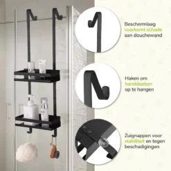 Het hangend doucherek is voorzien van 2-lagen voor al jouw douchespullen. Berg shampoo, douchegel, conditioner, scheerschuim en mesjes netjes op. Altijd binnen handbereik!