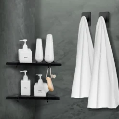 Setje van 2 zelfklevende handdoekhaakjes met krachtige plakstrip