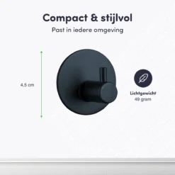 Handdoeken, theedoeken, vaatdoeken, als je ze gebruikt moeten ze droog en schoon zijn. Met deze handige ophanghaken, die je dankzij de sterke plakstrip makkelijk op een muur of kastje kunt plakken, heb je altijd een plekje om je doeken op te hangen. De zelfklevende haakjes zijn gemaakt van zwart RVS en eenvoudig te monteren. Je hoeft er namelijk niet voor te boren. Een must have voor je badkamer of keuken.