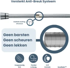De EcoRain™ Doucheslang maakt het mogelijk! Want zonder goede Doucheslang ben je natuurlijk nergens. De EcoRain Doucheslang is gemaakt om lang mee te gaan en ten allertijden hoge prestaties te kunnen leveren. Onze Doucheslang is bestand tegen de hoge druk van water, of deze extreem heet of koud is maakt niet uit. Dankzij de verdikte uitvoering is dat geen uitdaging voor de EcoRain Doucheslang.