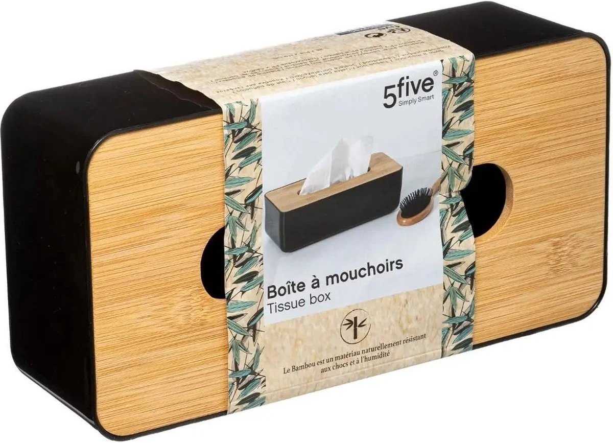 Tissuedoos/tissue box zwart kunststof met bamboe deksel. Navulbare tissue of zakdoekenhouder geschikt voor rechthoekige zakdoekjesdozen. Afmeting: ca. 26 x 13,2 x 8,8 cm. Materiaal: polypropyleen/bamboe.