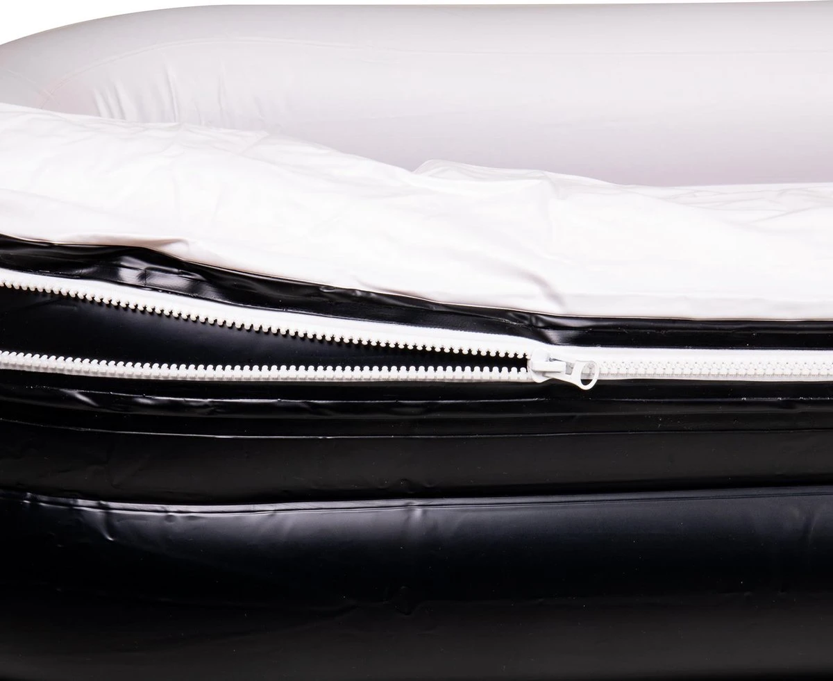 Bij het bad wordt er een handige elektrische pomp meegeleverd. Deze pomp zorgt ervoor dat het bad binnen de kortste minuten opgeblazen is en klaar is voor gebruik. Na gebruik laat u het bad makkelijk leeglopen via de meegeleverde afvoerslang. Haal de stop eruit en het water stroomt weg. Nadat alles eruit is kunt u het bad makkelijk en veilig opslaan in de bijgeleverde opbergzak.