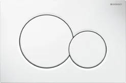 De Geberit Sigma01 is een modern vormgegeven bedieningsplaat. De rechthoekige plaat is vervaardigd van hoogwaardig kunststof en bevat twee ronde toetsen. Deze lopen vloeiend in elkaar over. Dankzij deze 2-toets bediening kan er bespaard worden in het watergebruik; de kleine toets is voor een kleine spoeling en de grote toets voor een grote spoeling. De Sigma01 bedieningsplaat past op elk Geberit Sigma inbouwreservoir.