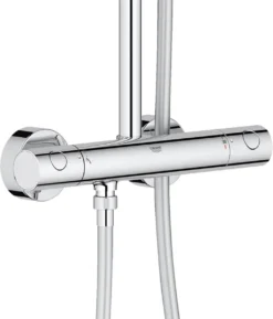 Met de GROHE Euphoria 260 regendouche met thermostaatkraan voeg je design en genot toe aan je badkamer. De 260mm hoofddouche beschikt over drie verschillende stralen. De Jet straal is krachtig en geconcentreerd waardoor hij perfect is om je haar uit te spoelen en voor een stimulerende hoofd- of nekmassage. SmartRain is een bredere straal en zorgt voor een stimulerende, maar tegelijkertijd ontspannende ervaring. De Rain straal maakt gebruik van alle sproeigaatjes van de royale douchekop voor een verzachtende douche waarbij je lichaam volledig wordt ondergedompeld met water.