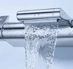 Als je het water als een waterval door de extra brede uitloop in je bad ziet stromen dan ontstaat als vanzelf een feel good sfeer. De functionele en mooie thermostaatkraan laat zich eenvoudig op de door jou gewenste watertemperatuur instellen. Dankzij de op de kraan bevestigde GROHE EasyReac tray zijn je shampoo en badschuim altijd binnen handbereik.