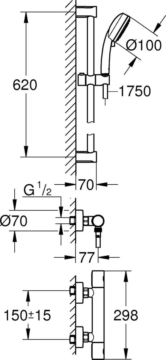 - Douchestang 600 mm en Relexaflex doucheslang 1750 mm