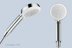 Met de handdouche Crometta 100 Vario van hansgrohe wordt de dagelijkse douche een genoegen. Het moderne design met het glanzende chroomoppervlak en de witte straalplaat zorgen voor een fascinerend contrast. Maar ook de binnenkant overtuigt: de douchekop met een diameter van 10 cm verwent met vier op elkaar afgestemde straalsoorten: De weldadige Rain-straal zorgt voor een verfrissende start van de dag. De Shampoo-straal is ideaal om haren uit te spoelen. Met de pulserende massagestraal komen vastzittende spieren zich los en de normale straal heeft veelzijdige toepassingen. wisselen van straalsoort kan eenvoudig door de gemakkelijk bewegende straalplaat te verdraaien.