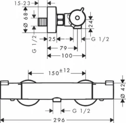 De thermostaat voor de douche wordt met behulp van de meegeleverde S-aansluitingen (hartafstand 150 mm +/- 12 mm) op een bestaande watertoevoer geschroefd. Daardoor is deze thermostaat heel geschikt voor het moderniseren van de badkamer, want de muur hoeft niet te worden opengebroken. De doucheslang wordt daarna met de standaardaansluiting op de thermostaat aangesloten. Klaar.