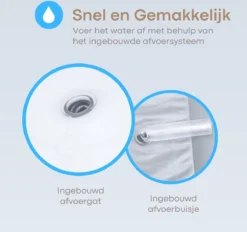 Klaar met badderen? Laat het bad gemakkelijk leegstromen door middel van het afvoersysteem. De bijgeleverde pomp kan zowel lucht uit blazen als in zuigen waardoor het bad snel en gemakkelijk weer een klein pakketje wordt.