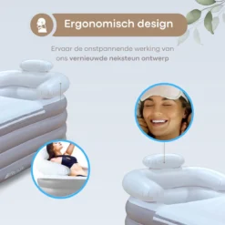 Urenlang in het warme water willen ontspannen maar geen badkuip tot je beschikking thuis? Geen probleem! HBKS lost dit op dankzij het aanbod van het ideale opblaasbare bad. Dit opblaasbad is niet alleen makkelijk op te zetten, maar ook nog eens gevuld binnen 5 minuten. Het ligbad is eenvoudig in gebruik en maakt het overal mogelijk te kunnen ontspannen. Stap na een drukke werkdag binnen no time in een heerlijk warm zitbad en kom tot rust.