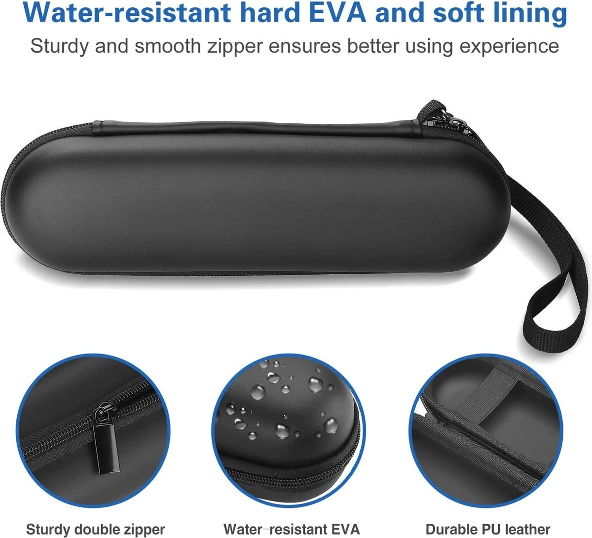 - De tandenborstelhouder bestaat uit hoogwaardig, hard EVA-materiaal en duurzaam PU-leer en biedt uitstekende bescherming tegen krassen, stoten, spatten en stof