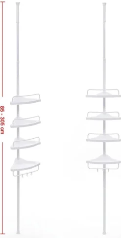 Ideaal dit telescopische uitschuifbare doucherek om in uw douche te gebruiken. Dit doucherek kan universeel in de hoek worden geplaatst. Dit Douchrek is gemaakt van rvs en heeft 4 verstelbare trays, om al uw douche benodigdheden en shampoos in op te ruimen. De telescopische douche stang is in hoogte verstelbaar van 85 cm –naar 305 cm.