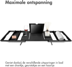 De multifunctionele badkuip houder beschikt over uitschuifbare pootjes. Hierdoor kan je het rekje bijvoorbeeld ook gebruiken als dienblad voor op bed. Verras jouw partner met een heerlijk ontbijt op bed in het weekend.