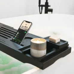 Het badrekje van iMoshion beschikt over meerdere uitsparingen voor bijvoorbeeld glazen, geurstokjes of kaarsen. Zo creëer je gemakkelijk een ontspannen sfeer tijdens het badderen. Ook beschikt het rekje over een handige zeephouder en een bakje voor overige toiletspullen. Daarnaast heeft het badrekje een uitschuifbare houder voor je tablet, smartphone of een boek. Zo kun je optimaal genieten van jouw favoriete serie, film of boek.