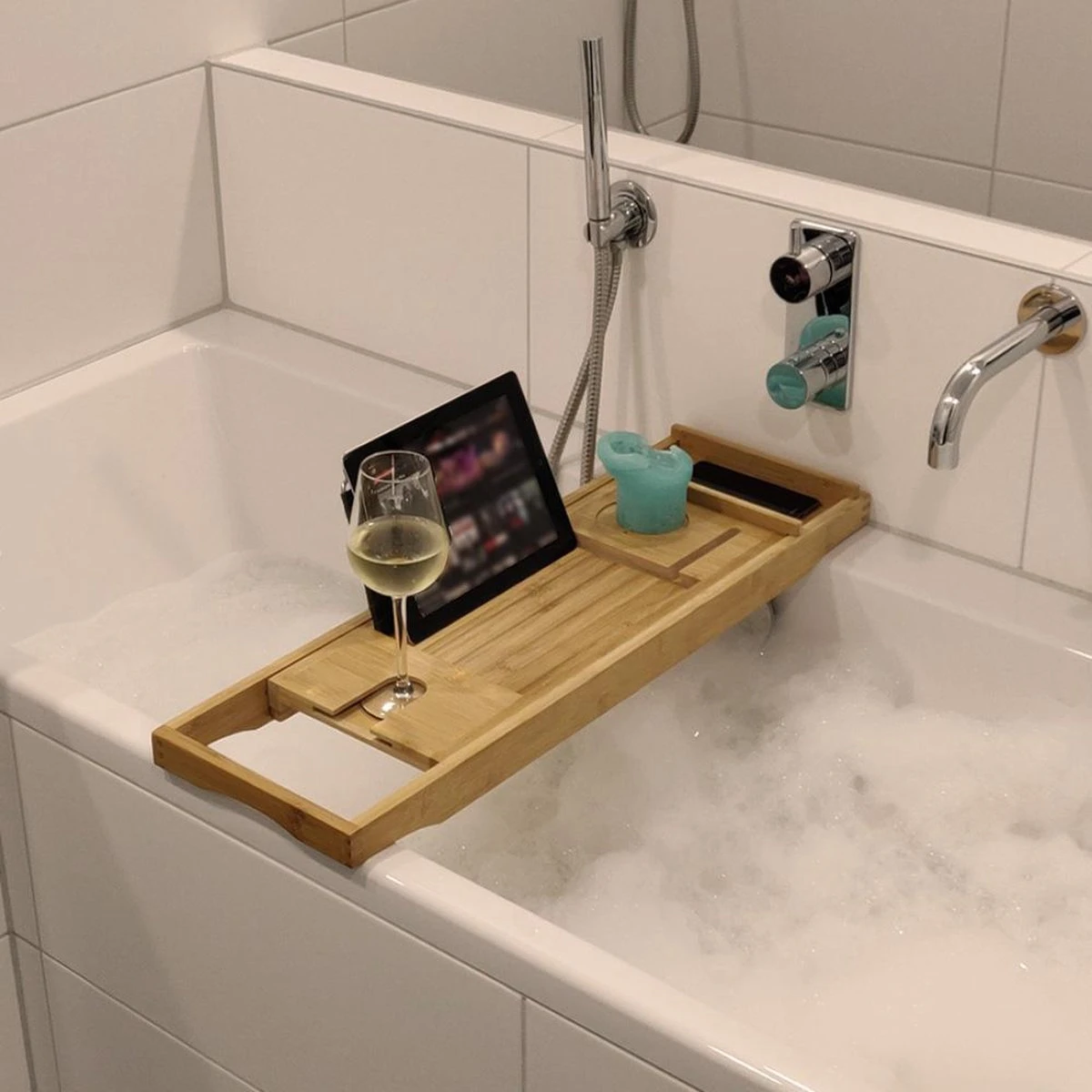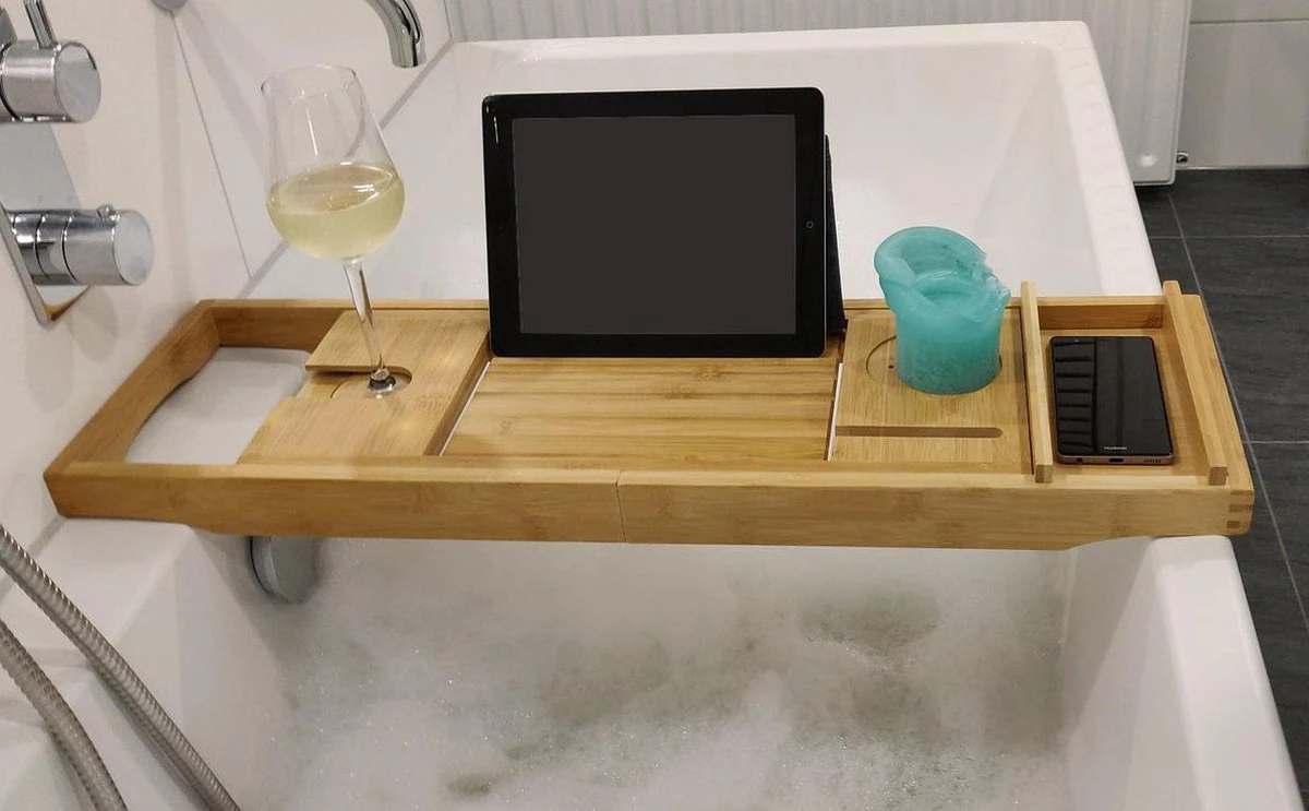 IVOL Badplank Bamboe – Badplank Hout Met Badrek Houders – Uitschuifbaar – 75 Tot 110 Cm