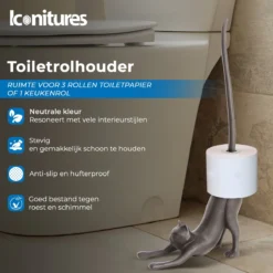 Stelt u zich voor… U bevindt zich in een toilet of badkamer en ziet plots deze reserverolhouder staan. Het tovert een kleine glimlach op uw gezicht. Deze reserverolhouder van Iconitures is subtiel, stijlvol maar vooral origineel. Tevens bruikbaar als keukenrolhouder. Wilt u uw WC, keuken of badkamer opfleuren of heeft u vrienden of familie die zijn verhuisd? Dan is dit de perfecte aankoop.