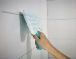 De tegel- en badkamermop Flexipad maakt het poetsen van de badkamer enorm eenvoudig. Dankzij zijn beweeglijkheid en de grote reikwijdte komt de Flexipad tot in de achterste hoeken – zonder dat u met een pijnlijke rug over de badkuip of in de douche hoeft te buigen. Door de ronde uitsparing past het mopvlak van de Flexipad precies in de vorm van armaturen en verwijdert met een paar bewegingen vieze vuilranden. Door zijn 360°-scharnier is hij daarbij zeer wendbaar. Hij komt moeiteloos onder elke badrand, kan goed om armaturen worden geleid en reinigt zorgvuldig elke hoek. Op lastig toegankelijke plaatsen kan de telescoopsteel worden gebruikt, die kan worden uitgetrokken tot een werklengte van 75 tot 120 cm. Na de vochtige reiniging wordt de Flexipad eenvoudigweg omgedraaid en vervolgens wordt er met de treklip een prachtige glans op de tegels en douchecabine aangebracht. De doek van de tegel- en badkamermop Flexipad bestaat uit de bewezen Leifheit-microvezel duo. Rijen met de fijnste, licht verhoogde borstelharen reiken tot in de dieperliggende voegen en verwijderen ook hardnekkig vuil, zoals kalk en zeepresten zonder enige krachtinspanning. De mopbreedte bedraagt 20 cm. Leifheit biedt 3 jaar garantie.