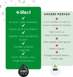 – spatwaterdicht (Let op ! Hou de timer niet onder stromend water of dompel deze nooit onder, dit kan de elektronica beschadigen)
