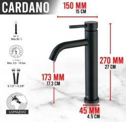 Ontdek wastafelkraan Cardano met zijn premium zwarte finish, waterbesparende functies én 5 jaar garantie. De ideale kraan voor het gebruik bij een vrijstaande waskom.