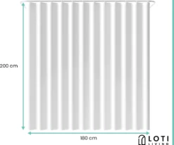 Het Loti Living douchegordijn is onmisbaar in elke badkamer. Het douchegordijn inclusief ringen is waterdicht en gemaakt van polyester. Het douchegordijn wassen is eenvoudig te doen in de wasmachine op 30 graden. Dit douchegordijn 180×200 cm is sneldrogend en anti schimmel. Het mooie en frisse ontwerp zorgt ervoor dat de badkamer er een stukje vrolijker uit ziet! Loti Living wenst u veel doucheplezier!