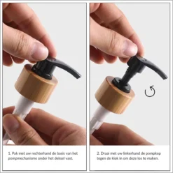 Premium kwaliteit – Deze set is gemaakt van versterkt glas en wordt geleverd met een stijlvol, handgemaakt bamboe dienblad dat past in elke keuken. Bovendien bevat de set twee hoogwaardige BPA-vrije plastic pompen die meer vloeibare zeep per druk leveren, waardoor een efficiënte en gemakkelijke dosering mogelijk is.