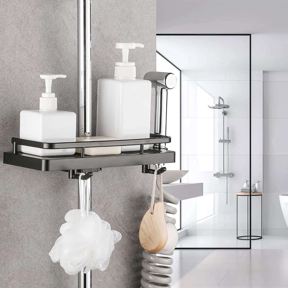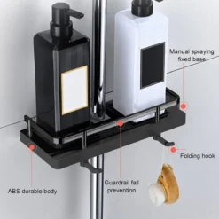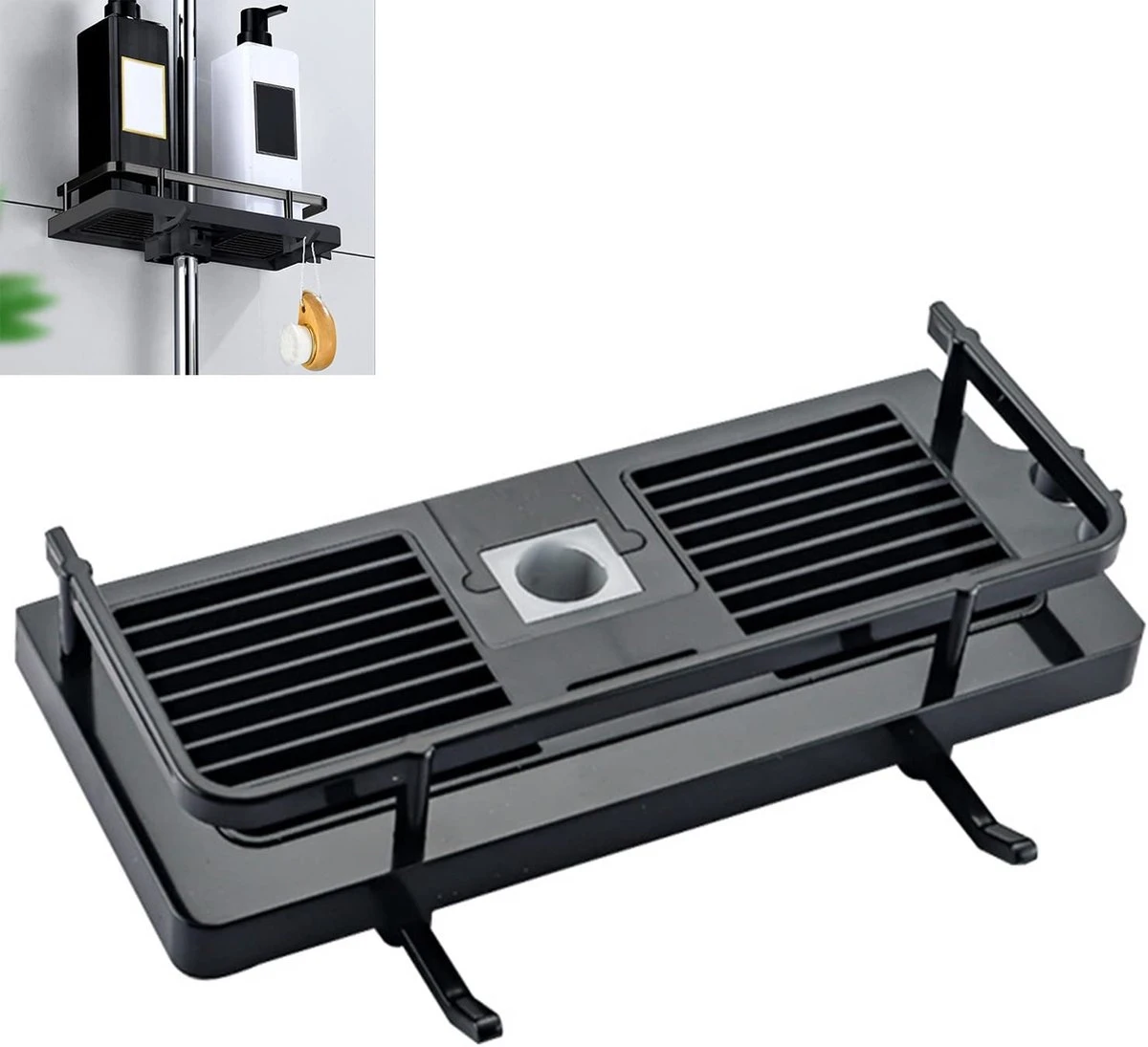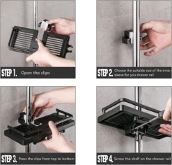 - Multifunctioneel – deze douchestandaard heeft meerdere gebruiksmogelijkheden. Het bespaart veel ruimte en houdt je badkamer schoon en opgeruimd. Dit multifunctionele rek is voor shampoo, douchegel, douche, handdoeken enz.