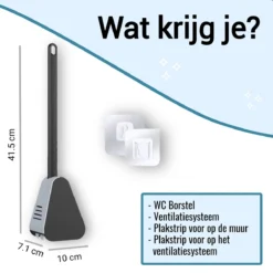 De houder is voorzien van openingen aan de zijkant. Hierdoor zal het water snel verdampen en zal de borstel vanzelf opdrogen na gebruik. Geen spatten op vloeren of muren wanneer je de wc borstel een volgende keer gebruikt. Ook hebben bacteriën hierdoor geen enkel overlevingskans en kunnen deze zich niet ophopen in de houder.