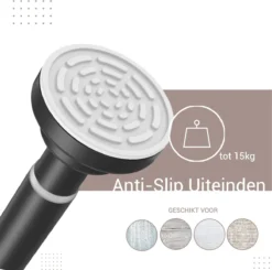 De Qproducts gordijnroede wordt gemaakt uit roestvrij staal. Daardoor blijft ze er mooi uitzien, zelfs in vochtige ruimtes. Daarnaast zijn de roeden voorzien van twee handige antislip-uiteinden.