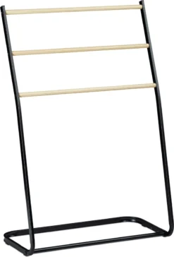 Met het staande handdoekrek kan je hand- en badhanddoeken ruimtebesparend drogen. De 3-armige handdoekladder kan vrij in de kamer geplaatst worden – zonder het vervelende boren. Het handdoekrek is snel opgebouwd en flexibel gebruikt worden. Hang bijvoorbeeld handdoeken en washandjes op de handdoekhouder. Of gebruik het ladderrek als dressboy in de gang of slaapkamer. Met zijn moderne design is de handdoekenhouder overal een echte blikvanger.