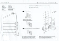 | Verpakkingsinhoud | 1. Douchepaneel 2. Messing verchroomde handdouche 3. Chroom doucheslang 4. Bevestigingsmaterialen |