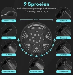 Salvano Douchekop – Waterbesparend – Hoge Kwaliteit – Handdouche – 9 Standen – Zwart 2023 Pro