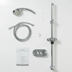 | Verpakkingsinhoud | Douchestang, wandbevestiging, doucheslang, aansluiting, pakkingen, toebehoren, montagehandleiding in diverse talen, o.a. Nederlands |