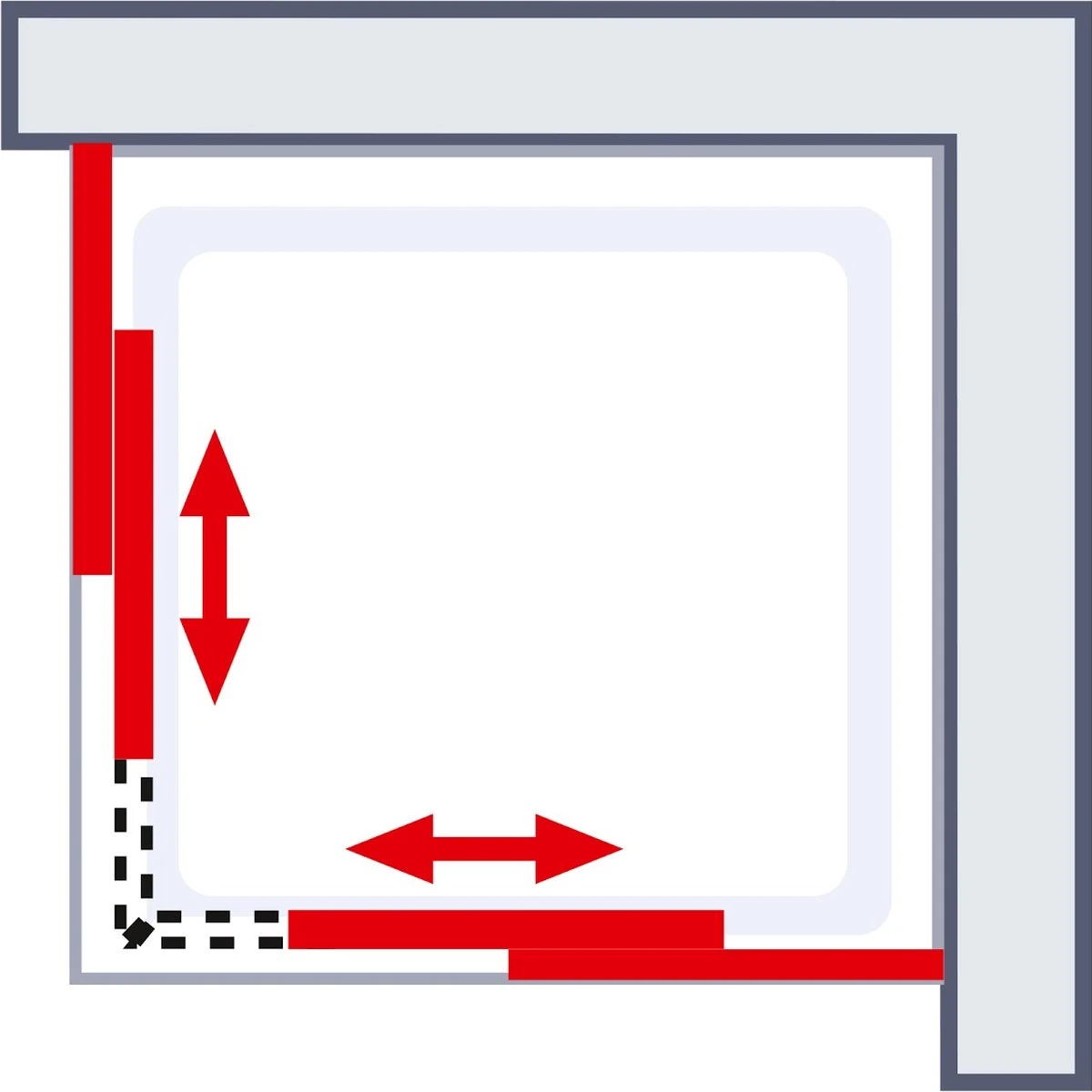 Passend op een douchebak 90×90 / 80×80 /75×75 cm of asymmetrisch binnen deze maatvoeringen. Bij vloermontage varierend van 735 tot max. 885 mm buitenzijde profiel