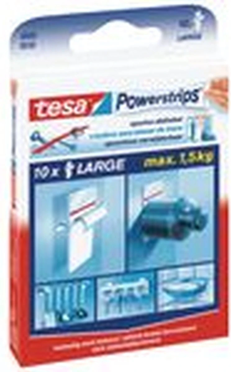 Tesa Powerstrips – Zelfklevende Strip – Dubbelzijdig – Large – 10 Stuks – Transparant