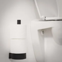 De reserverolhouder uit de Tiger Bold serie is uitgevoerd in de kleur mat zwart en biedt plaats aan twee rollen toiletpapier. Met dit accessoire zijn extra rollen toiletpapier op fraaie wijze op te bergen nabij het toilet zodat er altijd voldoende toiletpapier beschikbaar is. De bijgeleverde bevestigingsmaterialen zijn na montage van de reserverolhouder over het muurplaatje niet meer zichtbaar. De Bold serie bevat naast deze reserverolhouder een groot aantal aanvullende accessoires voor de badkamer of het toilet. Dit artikel is ook geschikt voor TigerFix type 2, waarmee accessoires snel en eenvoudig op een gladde, harde ondergrond te bevestigen zijn door middel van een gepatenteerd lijmsysteem. Boren is niet noodzakelijk en de accessoires zijn eenvoudig te verwijderen zonder dat er resten op de ondergrond achterblijven. TigerFix is apart verkrijgbaar.