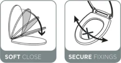 • Slow-Close toiletzitting: door de speciale scharnieren valt de zitting zacht en geruisloos dicht en voorkomt schade aan het keramiek