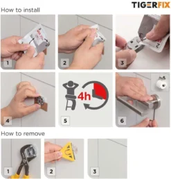 Wil je geen gaten boren in je nieuwe badkamertegels, zeker niet in natuursteen of grote tegels? Dan is TigerFix de oplossing. Deze gepatenteerde manier van monteren garandeert een zeer krachtige lijmverbinding op iedere gladde, stevige ondergrond. Groot voordeel van TigerFix is dat het muurplaatje eenvoudig, zonder beschadigingen, te verwijderen is. Handig bij huurwoningen, verhuizen of gewoon wanneer je accessoires wilt verplaatsen.