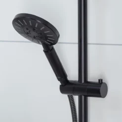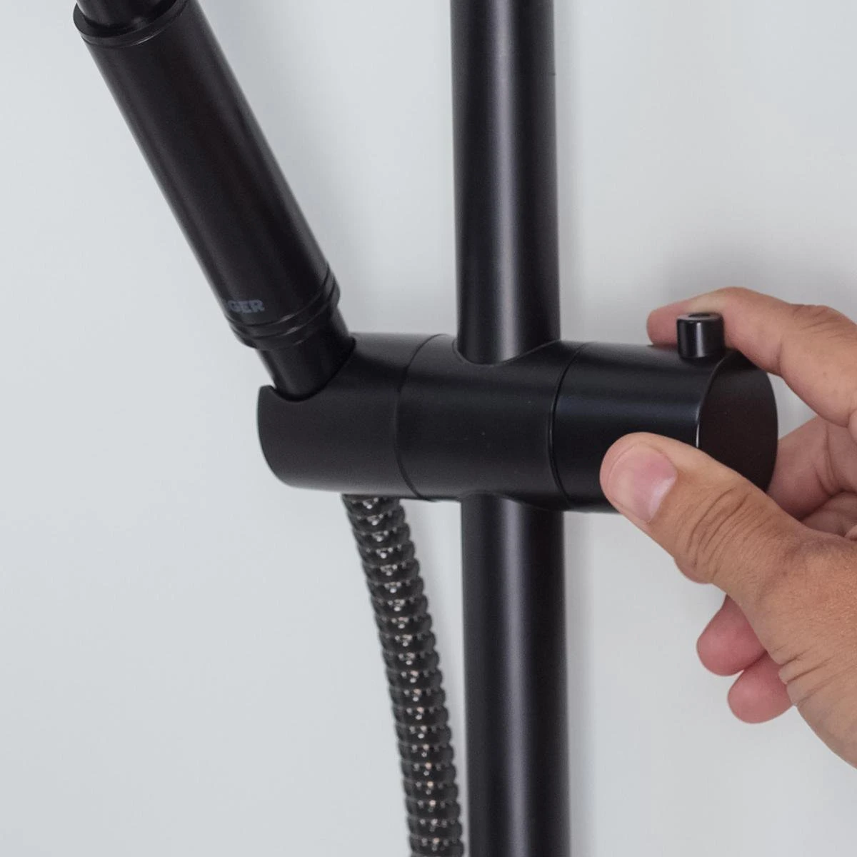 De tijd dat je alleen maar uit chroom of RVS kunt kiezen als kleur voor in je badkamer is voorbij! Met deze zwarte doucheset van Tiger maak jij je badkamer helemaal naar je eigen stijl. Geef je badkamer een industriële look of als stijlvolle aanvulling met een doucheset bij het bad. Deze doucheset uitgevoerd in mat zwart en bevat een handdouche, doucheslang en douchestang.
