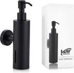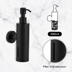 Het zeeppompje van VDN Stainless is uitgevoerd in matzwart en heeft een zeepreservoir waar het artikel eenvoudig is te vullen met vloeibare zeep. Met de bijgeleverde bevestigingsmaterialen is het zeeppompje eenvoudig op de gewenste positie op de wand te bevestigen. De zeepdispenser is gemaakt van hoogwaardig roestvast staal en aan de zijkant van het artikel is te zien of hij bijgevuld dient te worden.